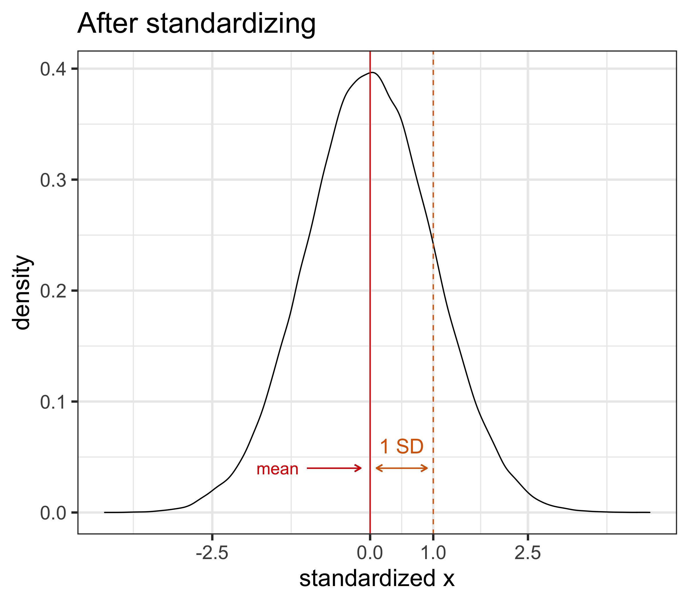 이제 \(z^{stand}\)는 평균이 0이고, 표준편차가 1이 됨, 즉: