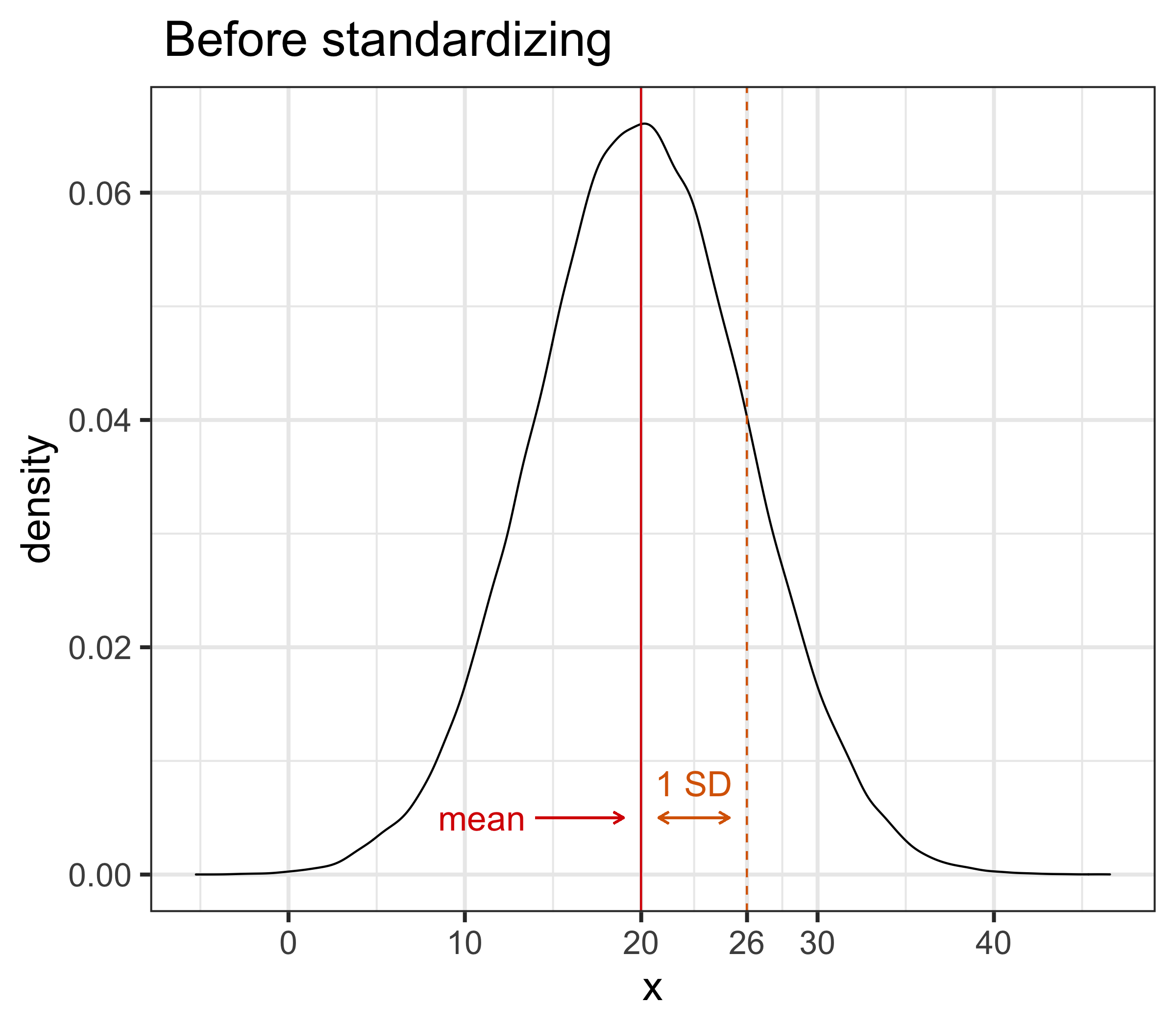 표준화란 변수 \(z\)의 평균을 빼고, 그 값을 변수의 표준편차로 나누는 것을 의미함: